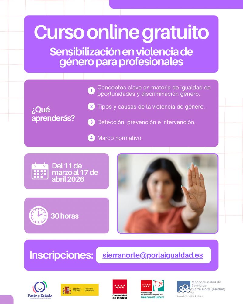 Para realizar la inscripción deberán escribir al correo electrónico: sierranorte@porlaigualdad.es